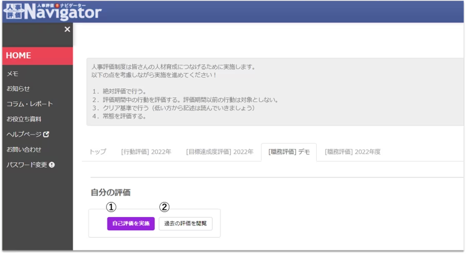 こちらのボタンをクリックすることで、評価入力画面に移動します。